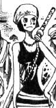 - ↑ 1,0 1,1 1,2 1,3 1,4 1,5 1,6 One Piece manga y anime — Vol. 19 Capítulo 167 y Episodio 105, Okame aparece por primera vez.