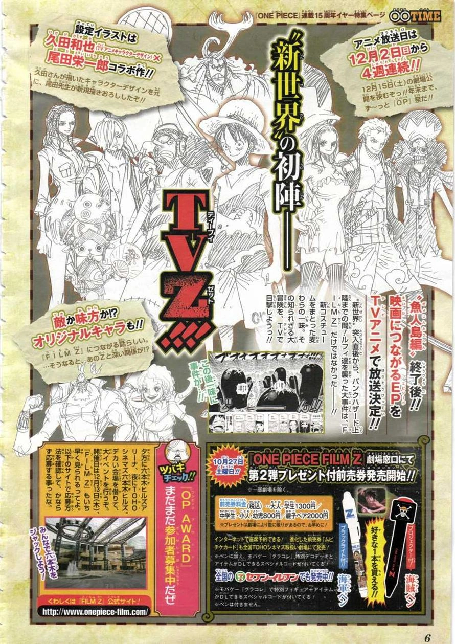 El Cuartel General de la Marina se mueve hacia adelante para hacer frente a esta conspiración, que es capaz de hacer temblar los pilares del Nuevo Mundo. Por otra parte el ex-almirante Aokiji, persigue a los Sombreros de Paja por el Nuevo Mundo, mientras estos deciden enfrentar a Z y a su tripulación con su increíble poder.