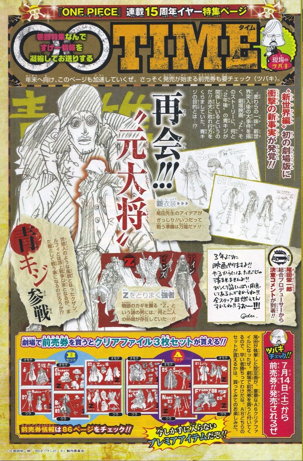 El manga de One Piece entró en la saga del Nuevo Mundo en febrero de ese año, y se esperaba que la introducción a la saga del Nuevo Mundo en el anime sucediera en octubre, junto con la Película 12. Este sería el primer largometraje en ser estrenado tras tres años (aunque se estrenó antes un cortometraje).[2]