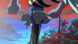 - ↑ One Piece Película — One Piece Film: Strong World, Shiki y sus espadas caen a través del cielo tras la derrota.