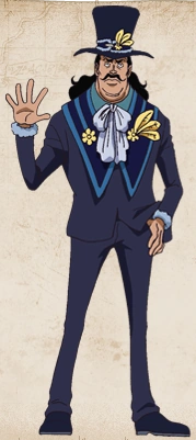 Trataba a Ace y a Luffy como basura. Temía estar contaminado, cuando un pirata de Bluejam lo mancha con sangre en una paliza. Alega que tiene que ser descontaminado.