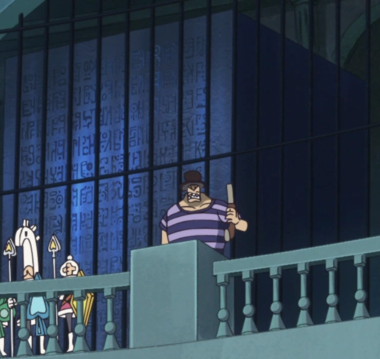 - ↑ One Piece manga y anime — Vol. 21 Capítulo 193 (p. 10-14) y Episodio 117, Crocodile que descifrar el poneglyph es su meta.