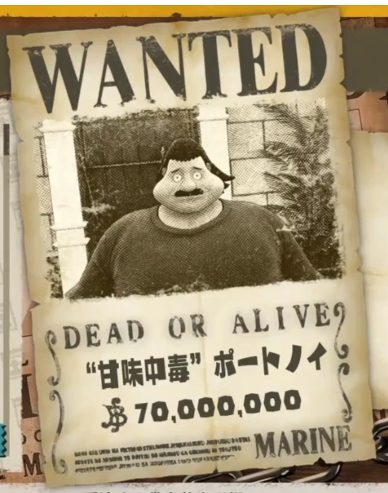 En busca de más recetas dulces para Big Mom, Portnoy se detuvo en Water 7. Su cartel de recompensa se extendió por toda la isla y fue recogido por los Piratas de Sombrero de Paja, que lo siguieron hasta la plaza de la fuente. Rápidamente, lo derrotaron, entregándolo a Margin para reclamar su recompensa.[1]