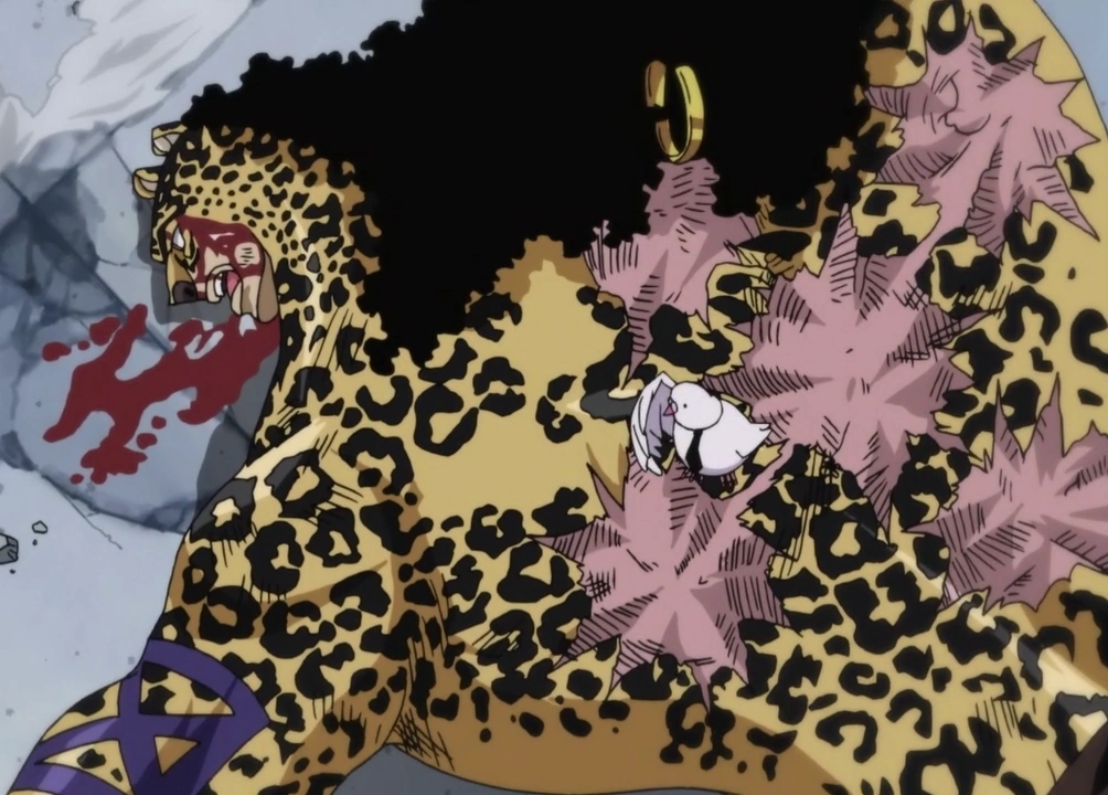- ↑ One Piece manga y anime — Vol. 107 Capítulo 1078 (p. 8-9) y Episodio 1111, Lucci y Luffy continúan luchando contra S-Bear.