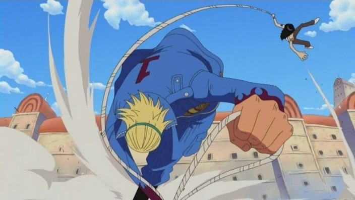 - ↑ 6,0 6,1 6,2 6,3 6,4 6,5 6,6 6,7 One Piece manga y anime — Vol. 36 Capítulo 345 y Episodio 243.