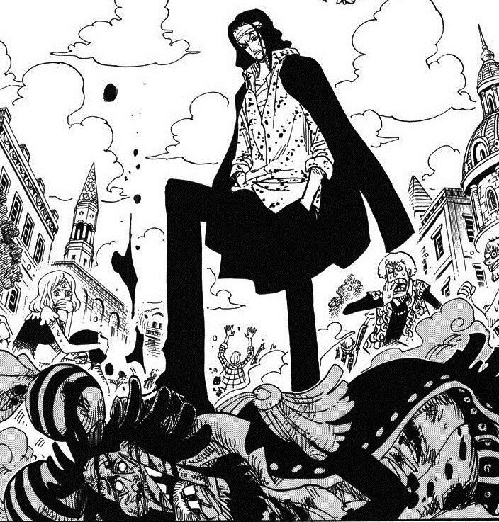 - Las cicatrices que tiene en la espalda, a causa de los cañones en la isla Raid, tienen el mismo «dibujo» que el símbolo que representa el Gobierno Mundial.