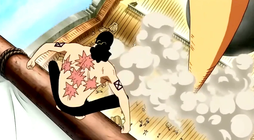 - ↑ One Piece manga y anime — Vol. 39 Capítulo 374 y Episodio 262.