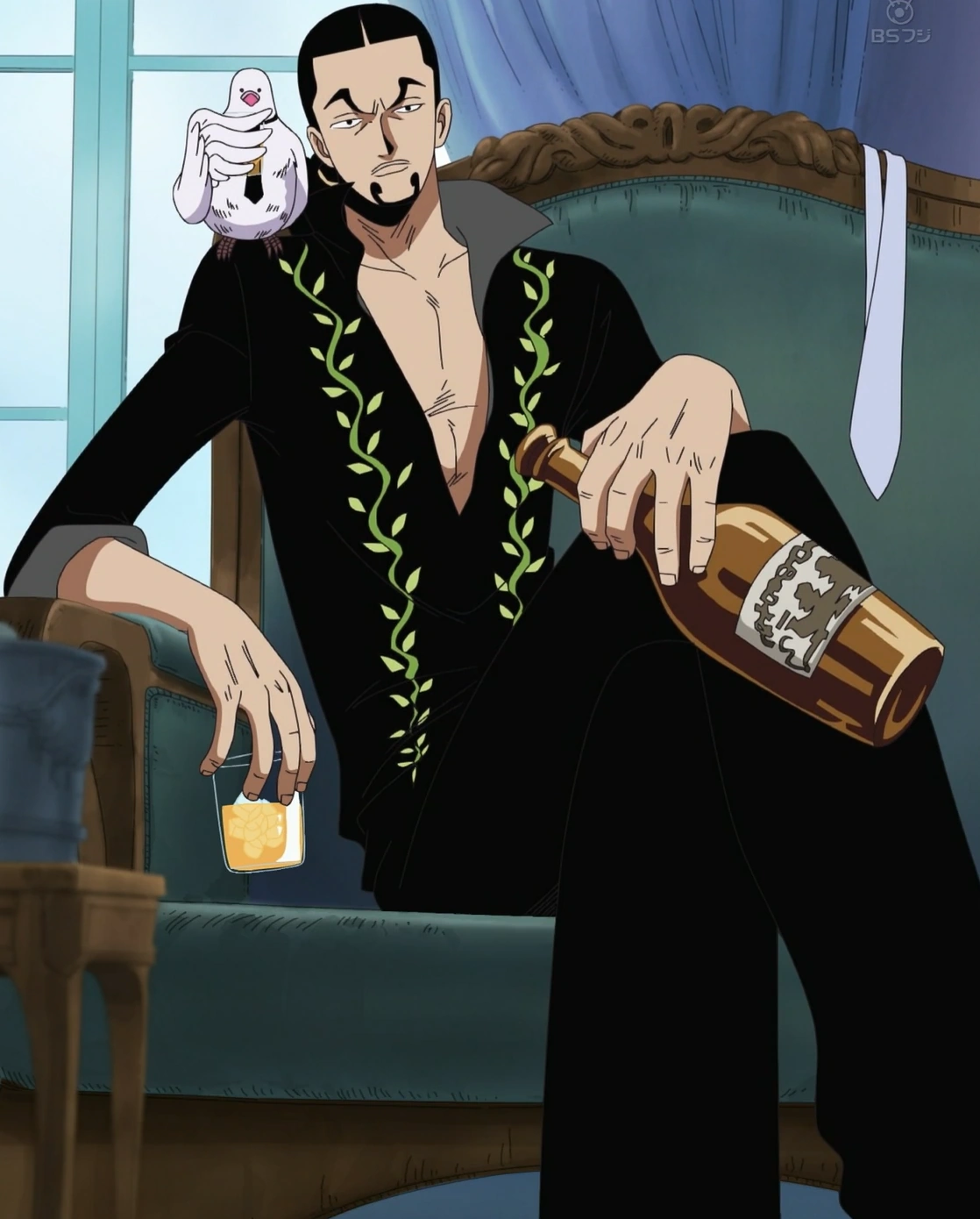 Su inexpresividad incluye la cólera y la angustia. Incluso mientras que se burla de o desmoraliza a Luffy, mantiene una expresión hierática. Sin embargo, durante los momentos finales de su lucha contra Luffy, expresa estar atónito y aterrorizado, justo antes de la derrota. A pesar de toda esta carencia de moralidad, ha exhibido alguna, si bien muy poca, condolencia para los que considera inocentes (por ejemplo: cuando los Piratas Candy están atacando a una pequeña aldea, él elimina, rápidamente, al capitán, para ahorrar la muerte a la tripulación), aunque su demostración de preferencia por la justicia absoluta incita, más adelante, a él y a sus camaradas a irse.[29]