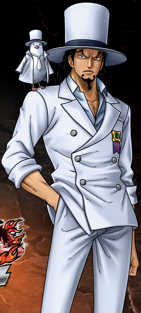 Tras el salto temporal, viste un traje blanco azulado, con un abrigo blanco, sobre los hombros. Lleva la barba más larga y está enrollada en la punta. Como agente del CP0, lleva una máscara que cubre la mitad superior de su cara, con marcas que se curvan, bajo los ojos. En One Piece Film: Gold, lleva una pequeña medalla en el pecho. Durante el arco del Levely, lleva una flor púrpura, en su lugar. Durante el arco de Egghead, lleva una medalla con un diseño ligeramente diferente.