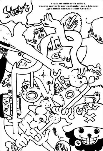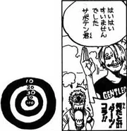 O: ¿Tan difícil era de imaginar? Ha habido unas cuantas personas que me han hecho la misma pregunta. No creo que se refiriese a los propios dardos, sino a la diana. Porque es como una espiral. ¡Maldita sea! ¡Ya podías explicarte mejor! ¡Estúpido Zoro!