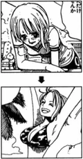 D: Buenos días, Oda-sensei. Como ya sabes, ¡¡¡Nami-chan es una monada!!! ¡Esa belleza, esas proporciones! Me estoy enamorando ♥ Por cierto, cuando la comparas con la Nami-chan del tomo 1, ¿no le han crecido un poco los pechos? P.N. Saori-chan