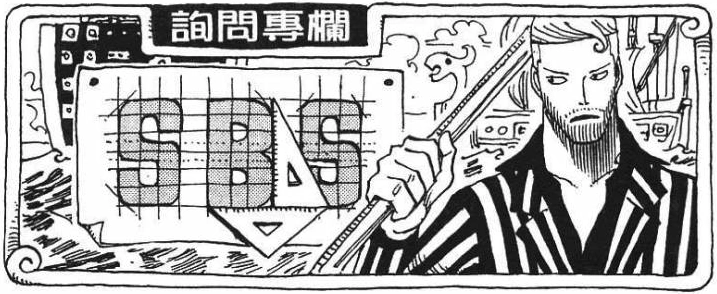 O: Oooh. Que sorpresa. Gracias por leer con tanta atención. Es increíble. Estás en lo correcto. Es el libro que habla sobre la isla de los gigantes, Little Garden, es un libro leído por todo el mundo, un tomo de "Aventuras en el Grand Line". Testimonios sobre todas las increíbles islas, personas y hechos en estos misteriosos mares, relatas por valientes exploradores, todas tan extravagantes y bizarras para los lectores normales del mundo que se les dio este título humillante. Si este libro todavía existe es porque los bravos eruditos de Ohara dieron sus vidas para protegerlo hace 20 años, te conmueve el corazón. Así que, ¿son estos "Brag men" (Hombres creídos) unos mentirosos? Quizás puedas descubrir la verdad tras esas historias a lo largo de las aventuras de Luffy. ¡¡Los veo en el SBS del próximo volumen!!