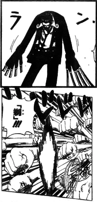 O: Ah sí, he recibido una cantidad sorprendente de preguntas sobre ello. El "Shakushi" del Capitán Kuro era muy duro. Para responder la pregunta, en cuanto a la velocidad, son más o menos lo mismo. Pero cuando el capitán Kuro cuando usaba esta técnica, iba tan rápido que ni siquiera sabía a quien atacaba. En cambio, el CP9 podía controlar sus movimientos a esta velocidad. Por lo que si los comparamos, el CP9 es mucho más poderoso.