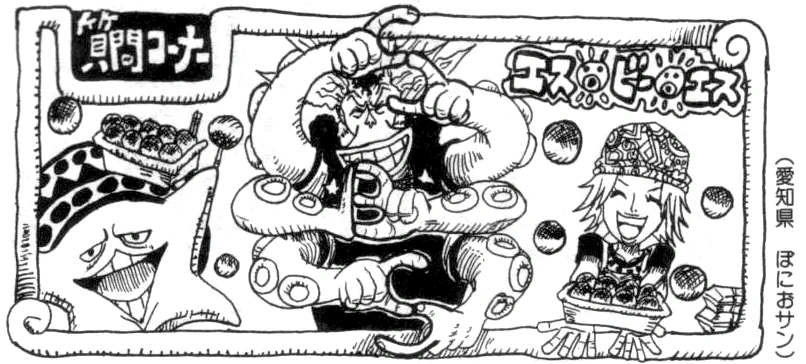 D: ¡Almirante! ¡Almirante! ¡Una pregunta para el Almirante Oda! Al comienzo del capítulo 502, "El incidente del Tenryuubito", ¿cómo es que el mierdoso del hermano Charloss se estaba hurgando la nariz? ¡Ah! ¡Ya sé! ¿Es porque funciona igual que las Bon Chari? P.N. Kinta