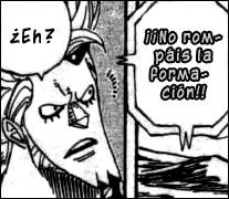 O: ¡¡SERÁS!! ¡¡No pienso usar esa cosa!! ¡¡No hay forma de que eso pueda ser un Shichibukai!!
