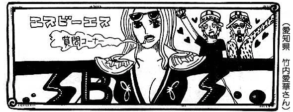 R: Hola Oda-sensei. Puedes tomar prestado One Piece en las bibliotecas, sabes. Incluso si no tienes cerca una puedes usar internet para buscar en tu zona y pedirlo. Incluso si no hay One Piece en tu zona, puedes solicitar diciendo "Yo quiero One Piece". Ahora incluso los niños pequeños pueden leerlo gratis. Vale, empecemos el SBS. P.N. Honokani