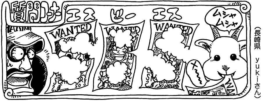 D: ¿Son las nubes que Oda dibuja, unas nubes Cumulonimbus? ¿O son los pedos de Odacchi? P.N.: Yoma Bayashiko (Prefectura de Wakayama) (el seudónimo de esta persona está escrito de la manera contraria a Mayo Kobayashi, un verdadero nombre japonés).