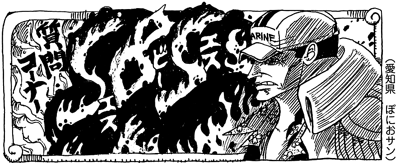| Akainu: Fruta Magu Magu; Hombre de Magma |