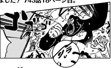 D: ¡Mr. Odaaaa! ¡¡He encontrado una de tus travesuras!! Está en la página 18 del capítulo 743. En la escena en la que Sabo destruye el ring del coliseo y la gente se asusta y comienza a huir... hay una onomatopeya escrita en la que pone "GOGOGO" para transmitir ese estruendoso ruido que el ring estaba haciendo al romperse, y si no estoy loco, estoy bastante seguro de que hay un gorila sentado cerca de esas onomatopeyas que tiene las letras "rilla" escritas en su mano. GoGoGorilla...! ¡Qué sigiloso por tu parte! P.N. Sagrado Arbol-kun