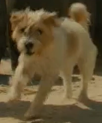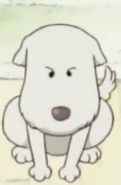 Es un perro bastante pequeño, que no parece pertenecer a ninguna raza en particular, con orejas cortas, piel fina y blanca, y ojos negros.[1]