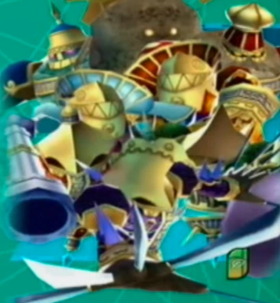 - ↑ 3,0 3,1 3,2 3,3 3,4 3,5 3,6 3,7 3,8 One Piece videojuego — Unlimited Cruise 2: El amanecer de un héroe, los títeres de barro se transforman en soldados malvados en la isla flotante.