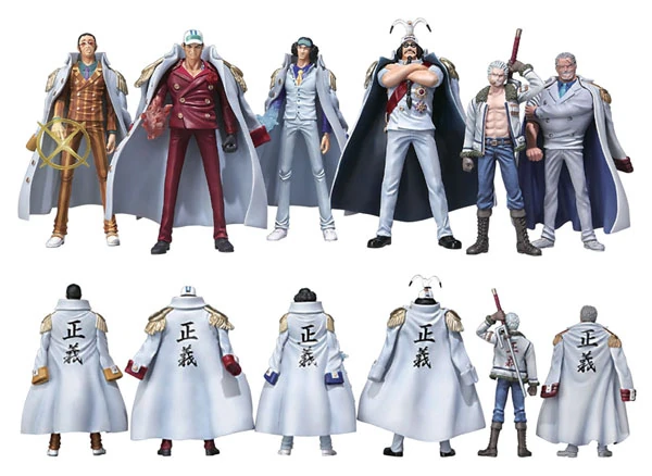 Las figuras son todos marines, los cuales son: Kizaru, Akainu, Aokiji, Sengoku, Smoker y Garp.