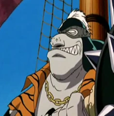 Él es un viejo rival de Arlong y cuando este es mencionado a Nami, debido a su experiencia con Arlong, se encogió ante la idea de que estaba en la carrera. Él y su equipo participaron en la carrera con su barco, el Web Panic.[1]