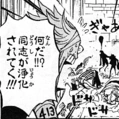- ↑ One Piece manga y anime — Vol. 47 Capítulo 456 y Episodio 350, un numero masivo de Soldados Zombis son purificados por toda la isla.