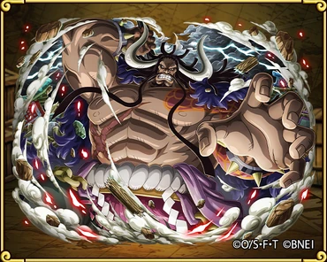 Je ne pense pas avoir à vous le présenter. Kaido, alias "au cent bêtes", surnommé "la créature la plus forte du monde". Est un membre des 4 Empereur et est l'un des personnages les plus puissants, résistant et endurant du manga. Ayant mangé le Uo Uo no Mi, modèle Dragon Azur. Il a la capacité de se transformer en gigantesque Dragon oriental, ou en une forme hybride, lui permettant de déchaîner les éléments. Il est également un expert du combat au corps à corps, maîtrisant les trois forme du Haki, dont leur forme avancée.