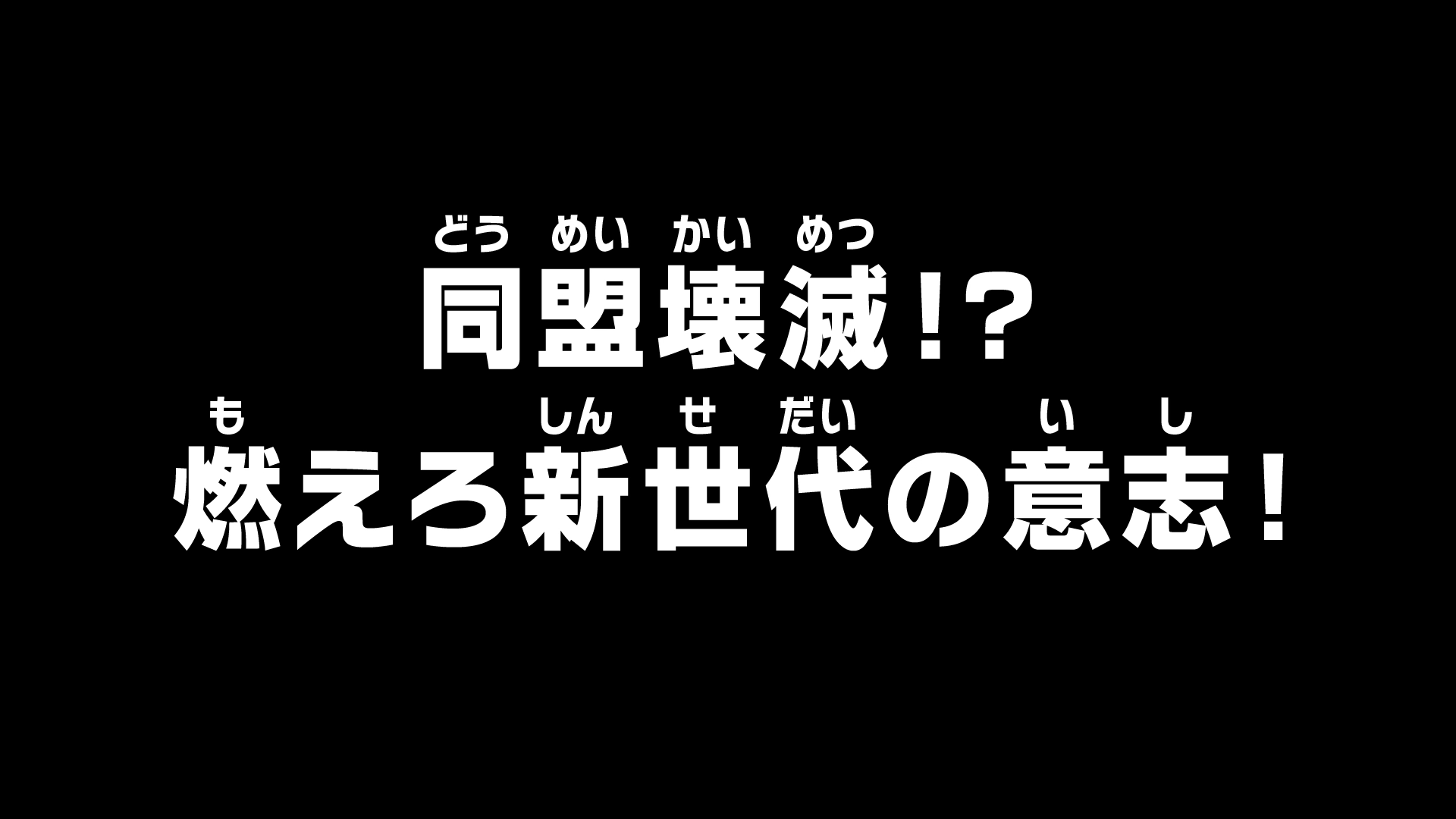 "La fin d'une alliance !? Que s'enflamme la volonté de la nouvelle génération !" est le 1065ème épisode de l'anime One Piece.