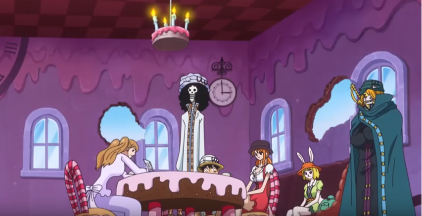 Quelques heures après, Sanji a fini de préparer sa "Crème Simsim" tandis que Chiffon et Pudding ont respectivement concocté un gâteau mousseline aérien et une ganache au chocolat. Ils comptent finir la préparation du gâteau durant leur route pour retrouver le Sunny.
