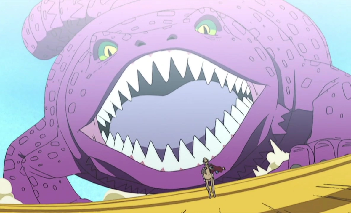 C'est un gros poisson carnivore[14] que L'Équipage du Chapeau de Paille va rencontrer au milieu du fleuve de Sandora, lorsque le crabe coulera. Ils seront sauvés par les Kung-Fu Dugongs qui viendront protéger leur maître. Il est classifié comme étant de type C, "Gros et Méchants".[1]