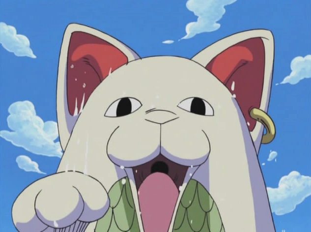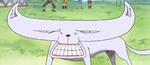Énorme animal marin avec un corps de cachalot et une tête de chat. Vivant près des côtes d'Alabasta, sa présence indique l'entrée dans la zone climatique stable du pays. Les insulaires le considèrent comme un animal sacré. C'est un monstre carnivore dangereux pour les marins, mais avec un bon instinct (lorsqu'il attaque le Vogue Merry, il comprend rapidement qu'il risque de mourir et doit sa vie à l'intervention de Nefertari Vivi).[16] Il est classifié comme étant de type A, "Gros et Gentil".[1]