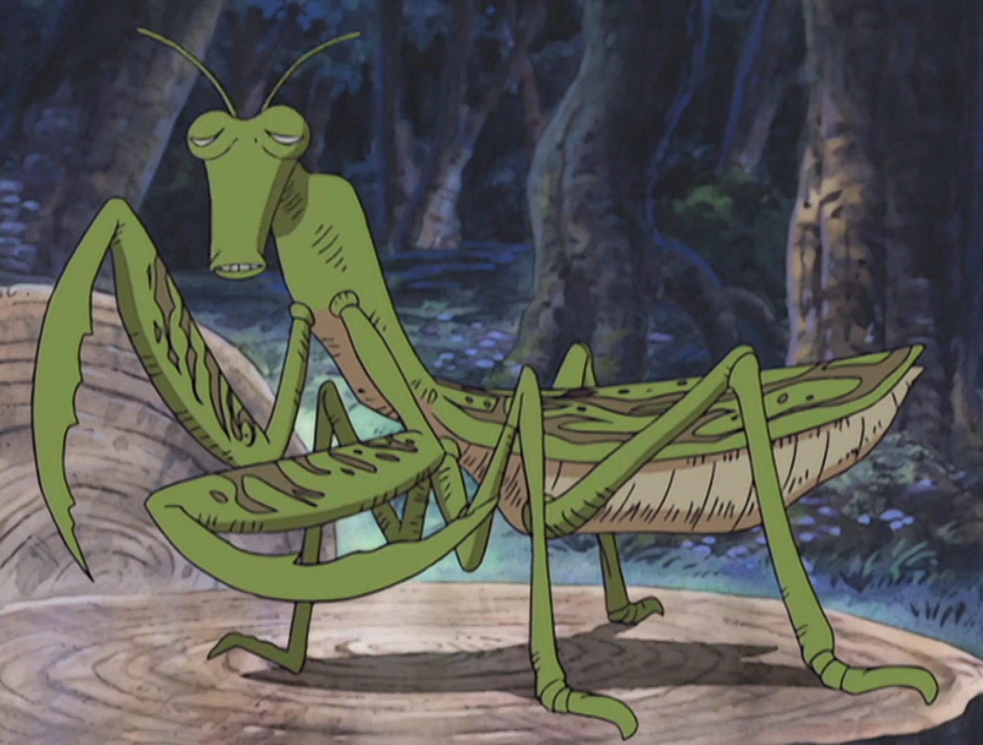 - ↑ One Piece Manga & Anime - Tome 25, Chapitre 231 et Épisode 150 - Apparition d'une mante religieuse géante.