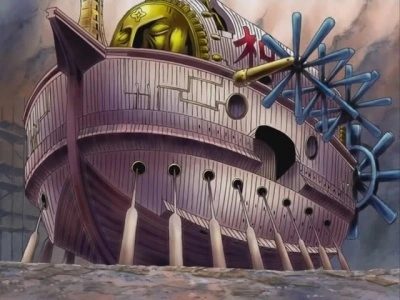 - C'est le cinquième véhicule propulsé par les pouvoirs d'un Fruit du Démon, avec la Billower Bike de Smoker, l'embarcation Striker de Portgas D. Ace, le navire de Galdino et la bicyclette d'Aokiji.