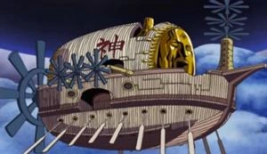 - C'est le permier navire capable de voler grâce aux pouvoirs d'un Fruit du Démon, et l'un des deux seuls avec l'Île Flottante de Shiki.