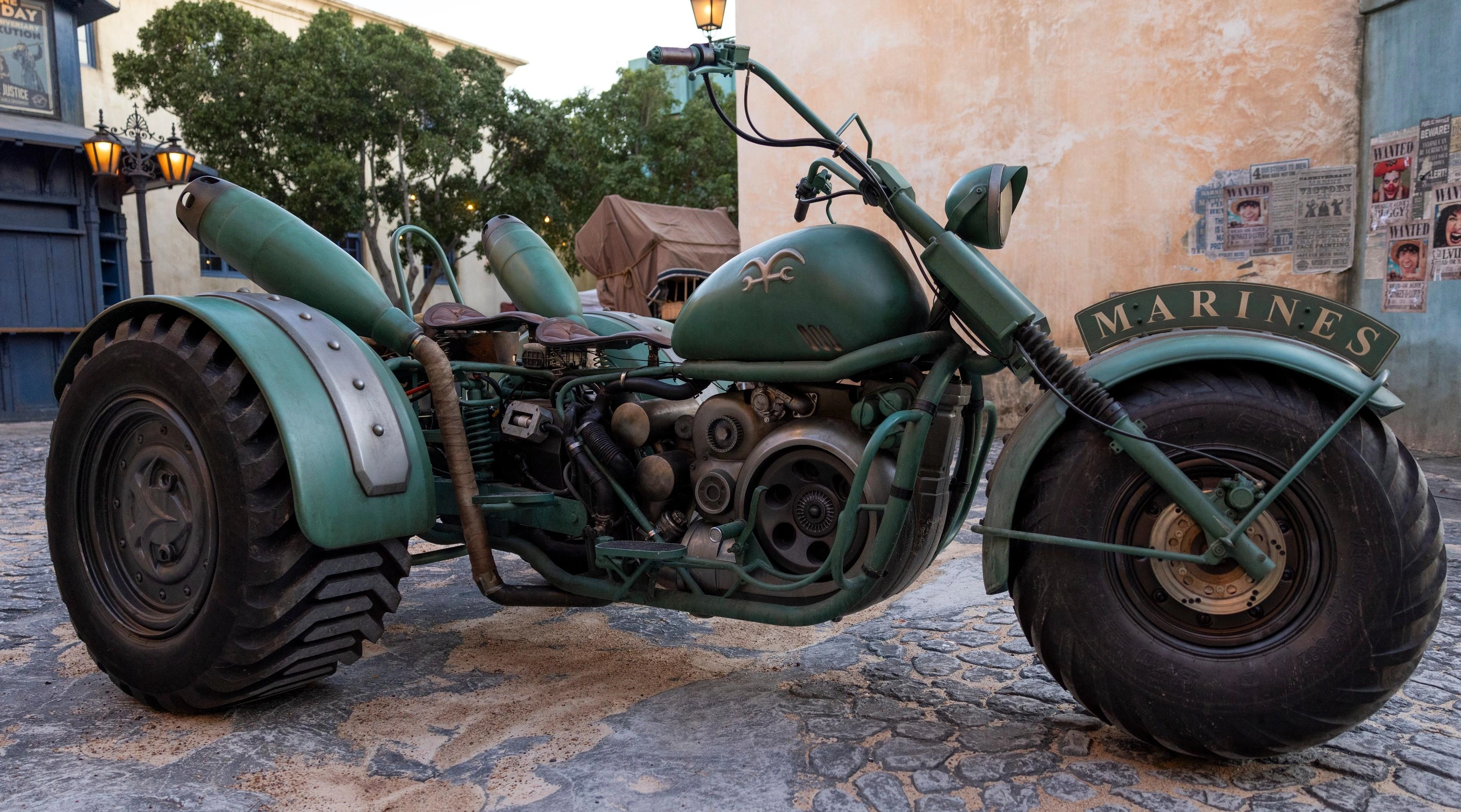 La partie avant de la moto ressemble à une moto classique, avec son guidon incurvé, son phare et sa roue avant unique. La partie arrière, en revanche, ressemble davantage à un buggy tout-terrain, avec une selle à dossier et deux roues arrière (chacune presque deux fois plus grande que la roue avant). Le véhicule est entièrement propulsé par le Moku Moku no Mi de Smoker, grâce à une paire de pédales en forme de croix que ses pieds, transformés en fumée, peuvent actionner sans effort.