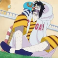Il considère les marines comme ses ennemis, sa tête étant mise à prix. Au moment de sa défaite, il décide de transpercer le cœur de Smoker pour se venger, mais, en réalité, il transperce le cœur de Mone et la tue sur le coup.