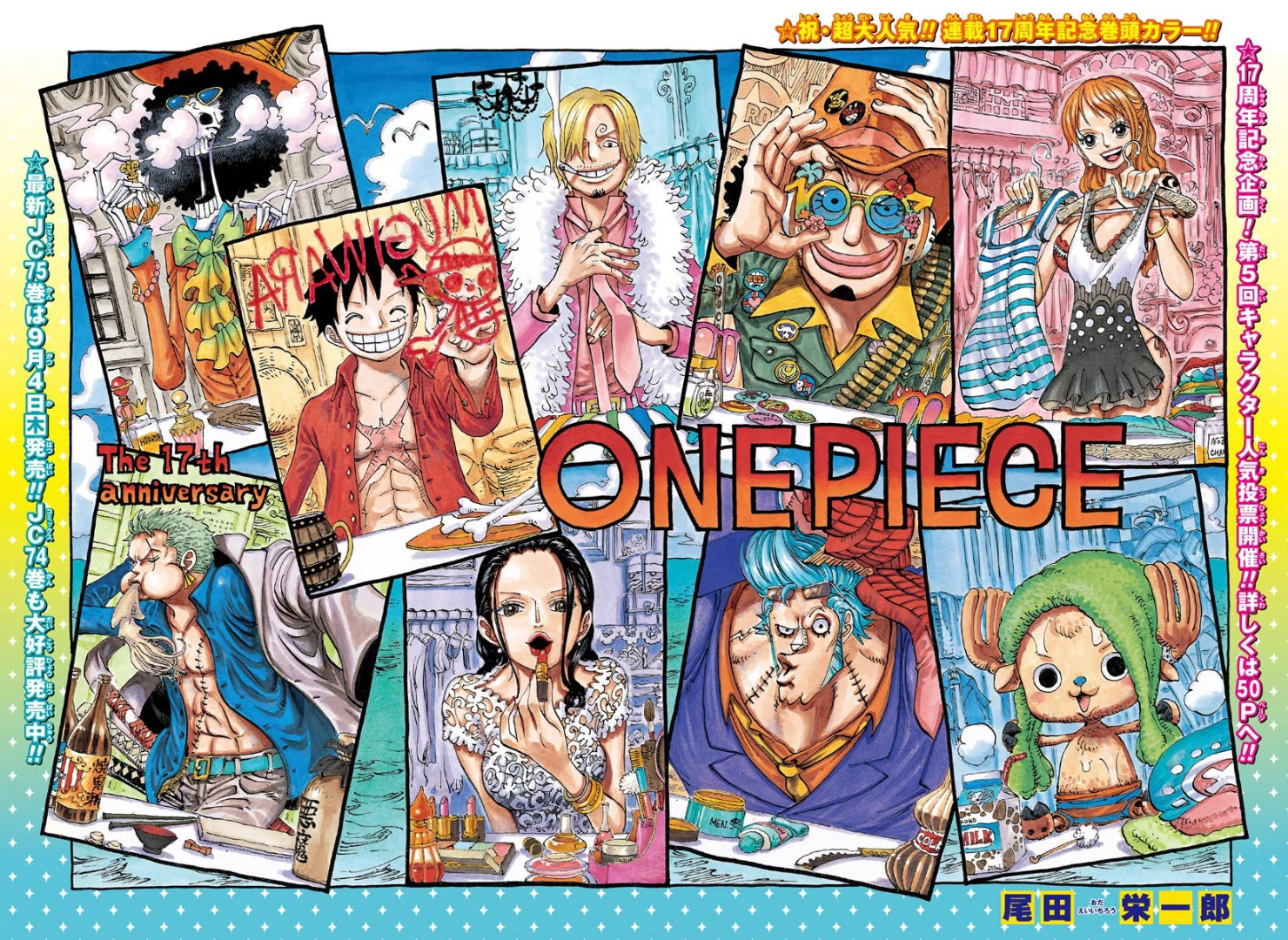 Illustration colorée Spéciale 17 ans : L'équipage se préparant devant leur miroir.