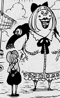 - ↑ 7,0 7,1 et 7,2 One Piece Manga & Anime — Tome 85, Chapitre 858 (p. 8-11) et Épisode 827 : Chiffon parle de sa sœur et sa mère à Nami et Carrot.
