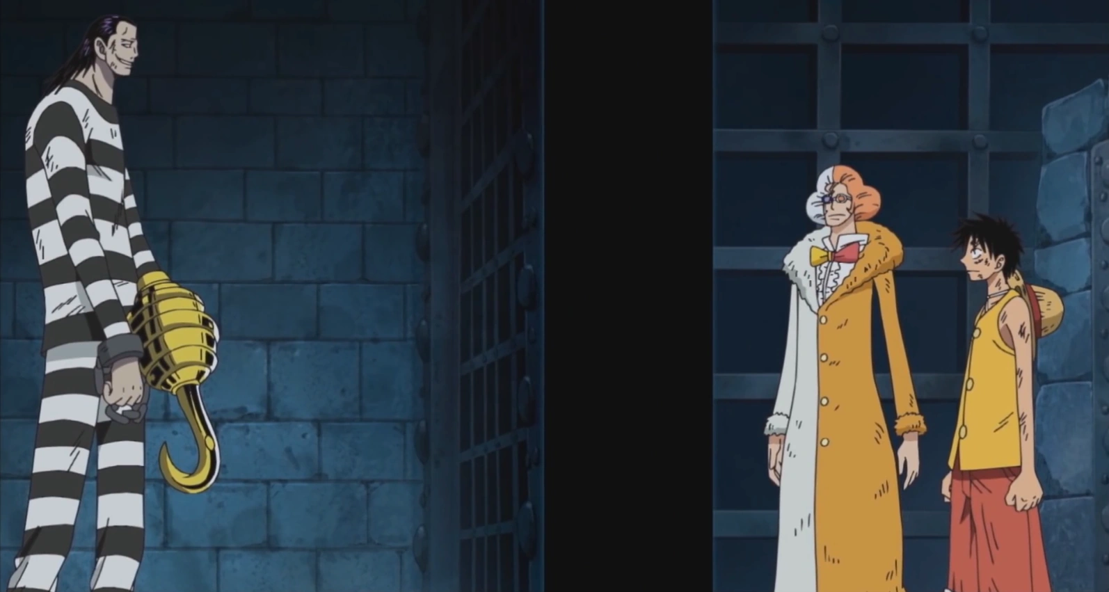 On les retrouve pour la première fois ensemble au niveau 6 d'Impel Down. Crocodile annonce alors son désir de tuer Barbe Blanche. Ace lui répondit : "Tu te crois vraiment capable de tuer le vieil homme ?", ironisant de ce fait. À Marine Ford, c'est Crocodile qui sauve Ace pour la première fois de l'exécution sous le prétexte "qu'il ne voulait pas voir la Marine se réjouir de la victoire".