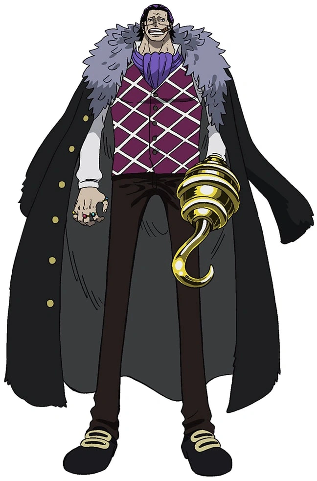 Étant donné que Crocodile a perdu sa main gauche dans un accident inconnu avant qu'il ne fasse son apparition, il a un énorme crochet doré à la place. Il a une base géante à l'endroit où il est connecté à son bras, et le crochet lui-même est fortement incurvé.