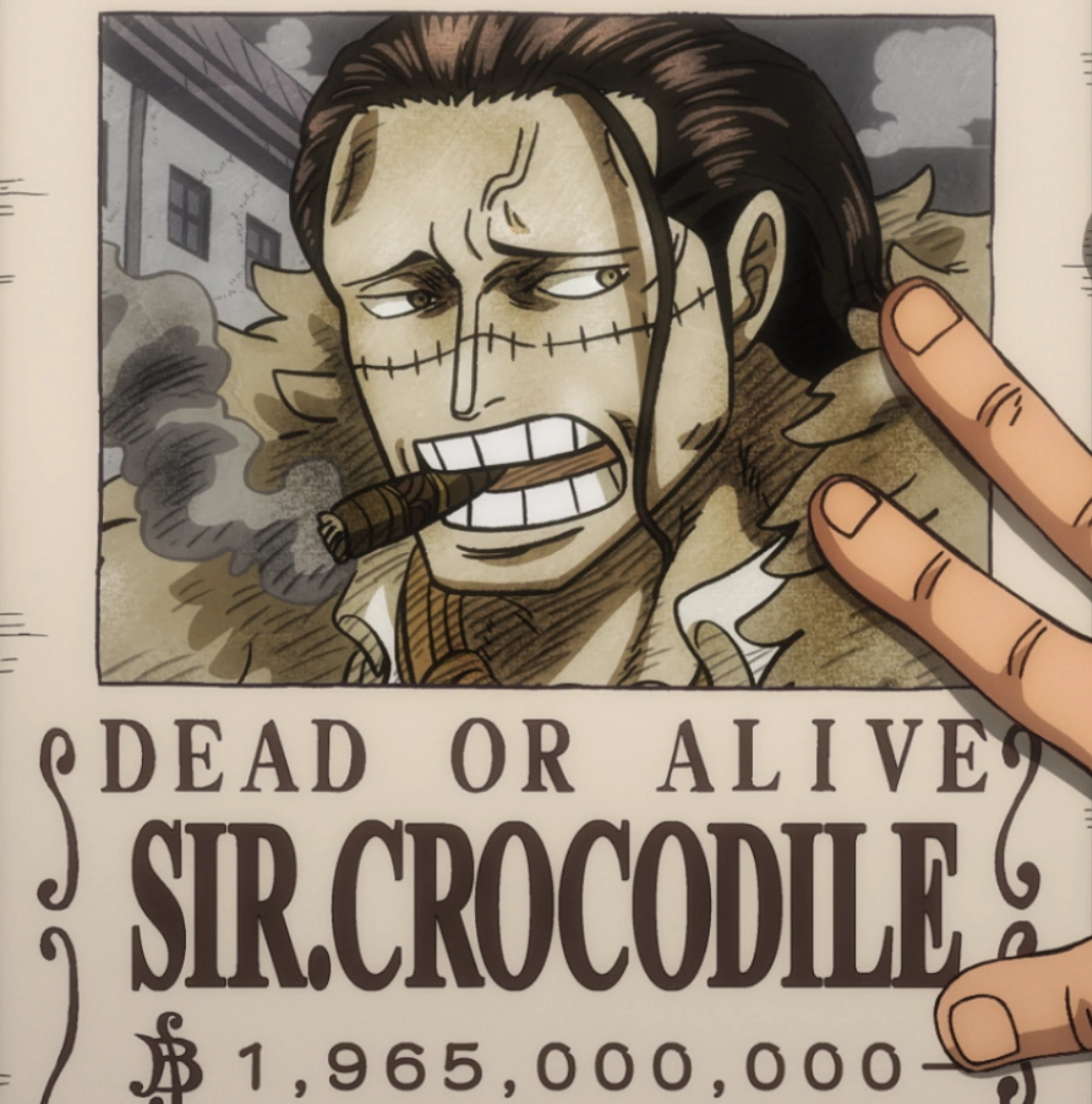 Crocodile est un ancien membre des 7 Capitaines Corsaires, montrant son statut de puissant pirate. Son ancienne prime s'élevait à
