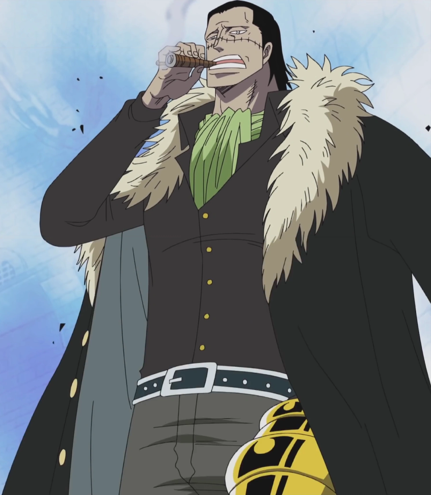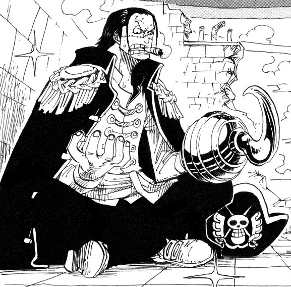 Crocodile, plus connu sous le titre de Sir Crocodile[11] (サー・クロコダイル, Sā Kurokodairu) ou de Mr 0 (ミスター・ゼロ, Misutā Zero), était le président de Baroque Works[12] et l'antagoniste principal de la Saga Baroque Works. Il est le premier ennemi de la série qui a duré aussi longtemps et fut le premier ennemi à avoir réellement battu Luffy. Il fut d'abord présenté comme l'un des sept grands corsaires, mais il fut dépouillé de son titre lorsqu'il a essayé de prendre le contrôle d'Alabasta, le royaume du désert. Après avoir été ennemis, Luffy et lui ont formé une alliance improbable lors de leur évasion d'Impel Down et la deuxième moitié de la bataille de Marine Ford.