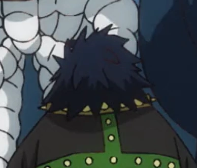 Dans l'anime, il avait les cheveux bleu foncé et portait une chemise noire moulante, avec ses accessoires de couleur verte avec des détails jaunes.