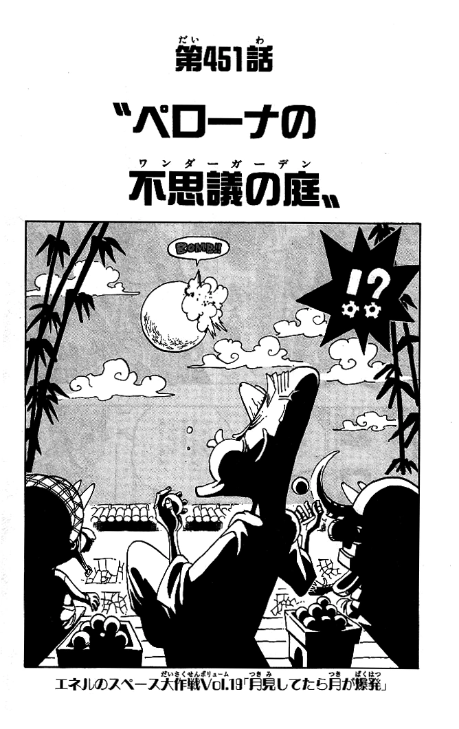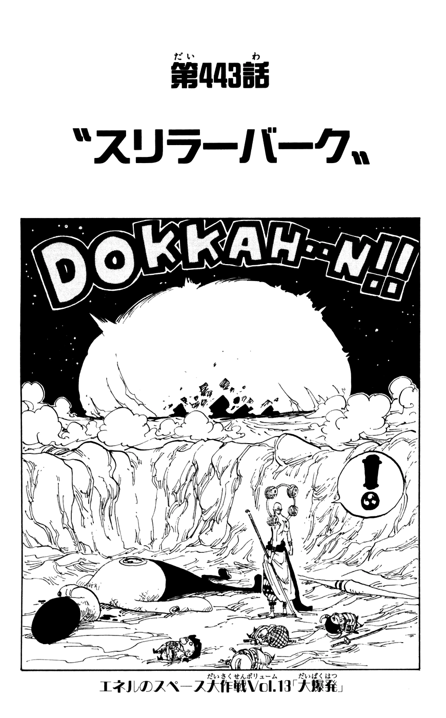 Ayant enfin atteint la lune, Ener rencontre un groupe de petits robots connus sous le nom Spaceys, ainsi qu'un brutal pirate de l'espace. Après une série d’événements, les pouvoirs du Goro Goro no Mi d'Ener finissent par frapper non seulement tous les Spaceys, mais aussi leur ville, et le Dieu auto-proclamé découvre ses véritables racines.