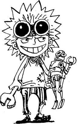 Quand il était enfant, ses cheveux étaient très pointus et plus longs, semblables à la crinière d'un lion. Il portait également des lunettes plus grandes et plus rondes et n'avait pas encore de lèvres sombres. Il a été représenté en train de bricoler un robot jouet avec une clé.