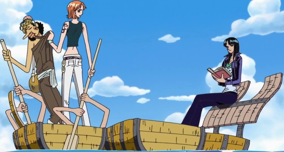 Avec Nami s'occupant de la navigation, Usopp utilisant un Impact Dial et Robin se servant de ses pouvoirs pour pagayer, ils devaient gagner la course. Cependant, Foxy et son Noro Noro Beam les ralentirent, permettant à son équipage de l'emporter.[1]