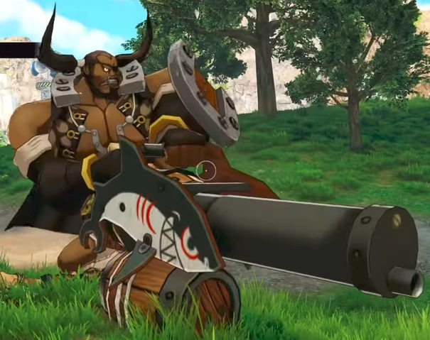 Immortal brandit une grosse mitrailleuse qui tire des balles de la taille d'une balle de baseball. En plus de lui tirer dessus, Immortal utilise sa bordée pour percuter ses adversaires.[1]