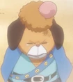 - Dans sa Vivre Card, il existe différents prototypes du personnage. Il était à l'origine censé être un chat ou une souris. Il a ensuite été considéré comme un chien avec une couronne sur la tête. [4]